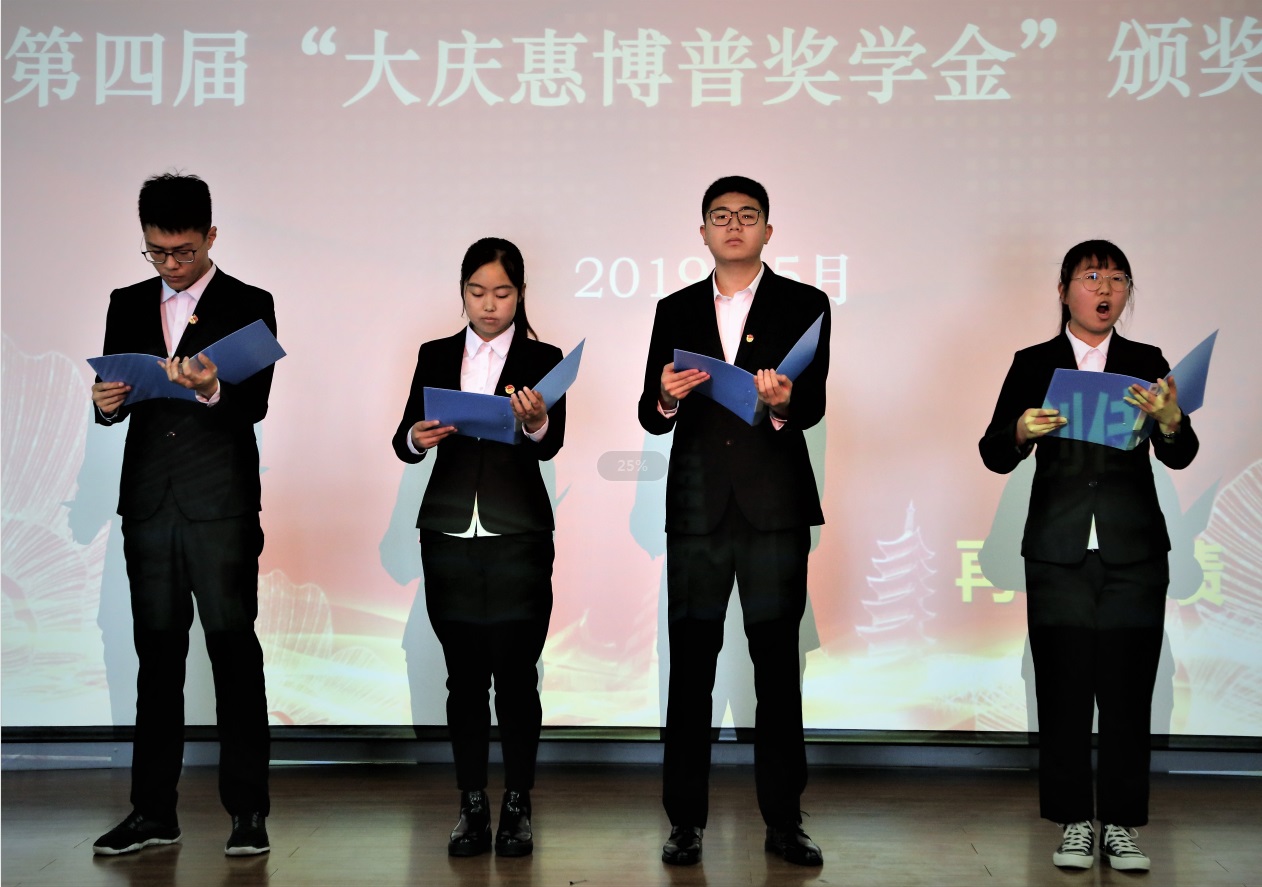 敦品励学,涵养优良学风;明辨笃行,领航青春梦想。5月29日上午,第四届“大庆惠博普奖学金”颁奖仪式在校图书馆十一楼多功能厅举行。英国365集团公司党委书记杨波、院长姜民政、节能中心副主任徐秀芬、副院长何富君、学生辅导员以及相关专业青年教师和学生出席,副院长赵立新主持仪式。
