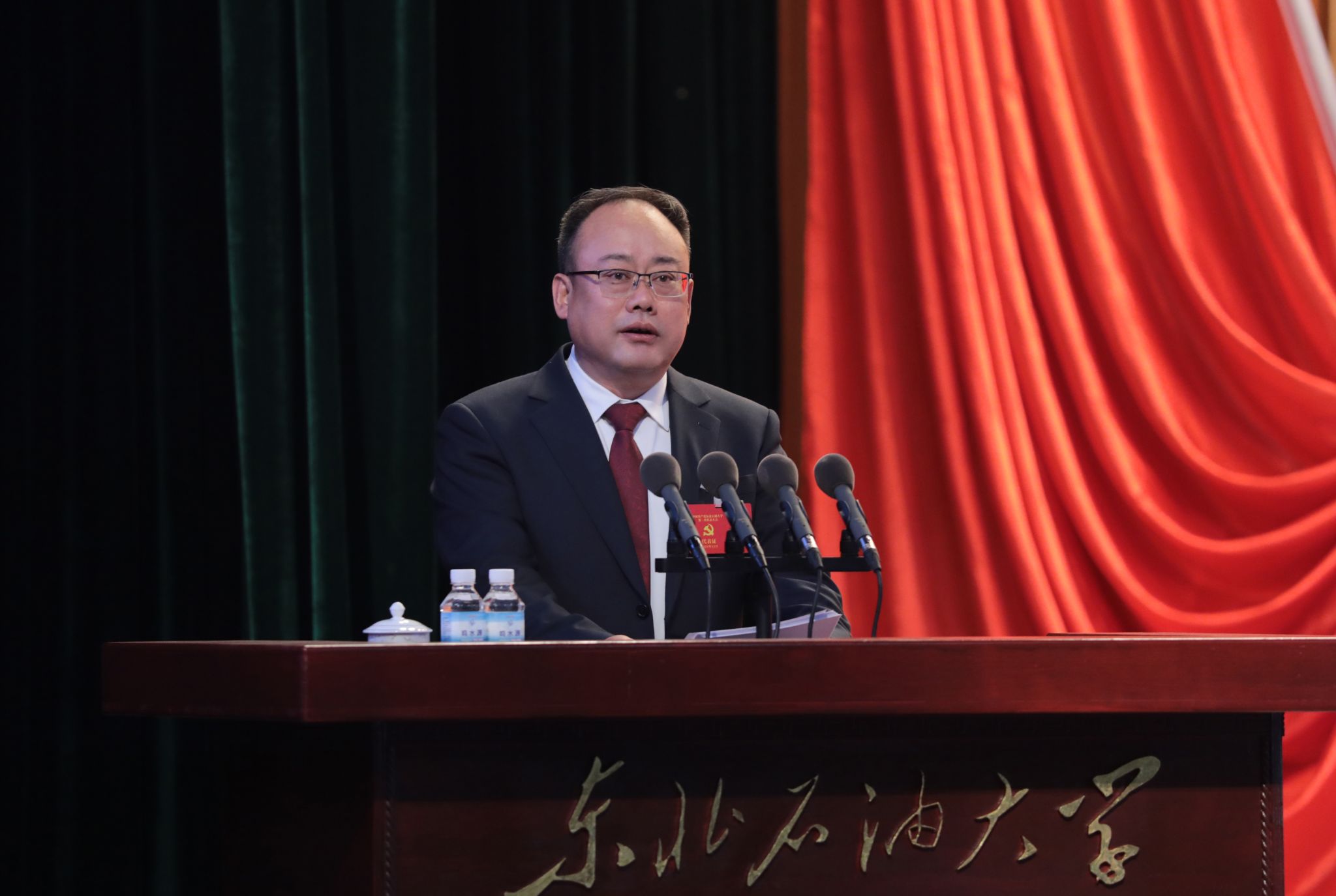 王震代表黑龙江省委教育工委、省教育厅对大会召开表示热烈祝贺。他指出,此次党代会的召开,对于东油科学谋划今后一段时期的发展战略和目标任务具有重大而深远的意义。他对学校新一届党委提出希望:要坚持党的全面领导,把牢社会主义办学方向;要提升办学治校水平,创建国内一流能源大学;要增强高质量发展能力,服务国家战略和龙江振兴发展。