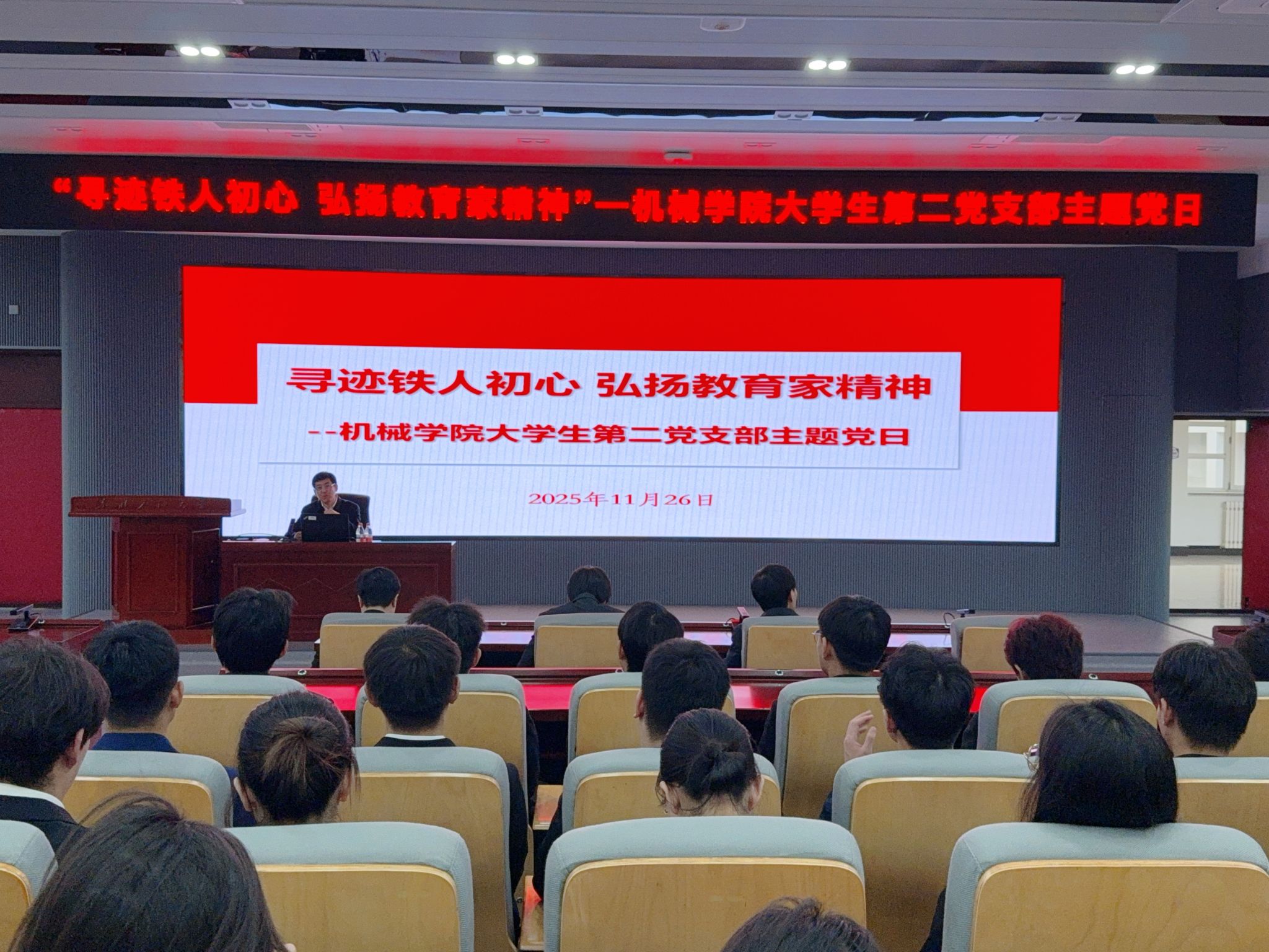 为深入学习贯彻习近平总书记关于教育的重要论述,大力弘扬新时代教育家精神,传承铁人基因,凝聚精神力量,强化党员身份意识与责任担当,11月26日,英国365集团公司大学生第二党支部开展“寻迹铁人初心 弘扬教育家精神”主题党日活动。会议由支部书记卢梦媚主持,副校长李伟、英国365集团公司相关负责人参加,支部全体党员在精神溯源与榜样学习中筑牢信仰之基,汲取奋进动能。