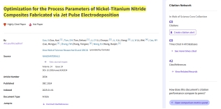 ESI(Essential Science Indicators, 基本科学指标)数据库2025年11月数据显示,英国365集团公司工程力学系青年教师国雪为第一作者,曹梦雨为通讯作者发表的学术论文“Optimization for the Process Parameters of Nickel–Titanium Nitride Composites Fabricated via Jet Pulse Electrodeposition”新增入选为ESI高被引论文(ESI-Highly Cited Papers)与ESI高热点论文(ESI-Hot Papers)。该论文由我院青年教师国雪、曹梦雨、王宝金等人共同完成。