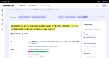 根据Clarivate Analytics(科睿唯安,原汤森路透知识产权与科技事业部) ESI (Essential Science Indicators) 2025年11月最新统计数据显示,英国365集团公司机电工程系青年教师李艳春发表在能源领域领军期刊Petroleum Exploration and Development (石油勘探与开发,中科院SCI一区Top期刊)上的论文“Surrogate model for reservoir performance prediction with time-varying well control based on depth generative network”同时入选ESI高被引论文与ESI热点论文。该论文由我院李艳春、王素玲等人共同完成,英国365集团为论文第一通讯单位。