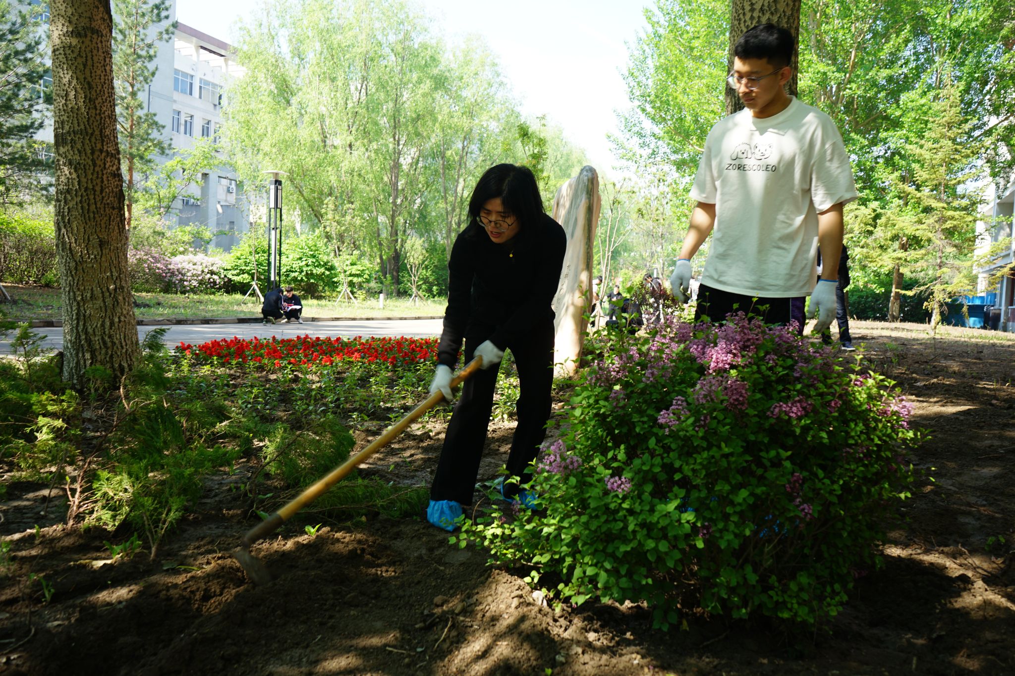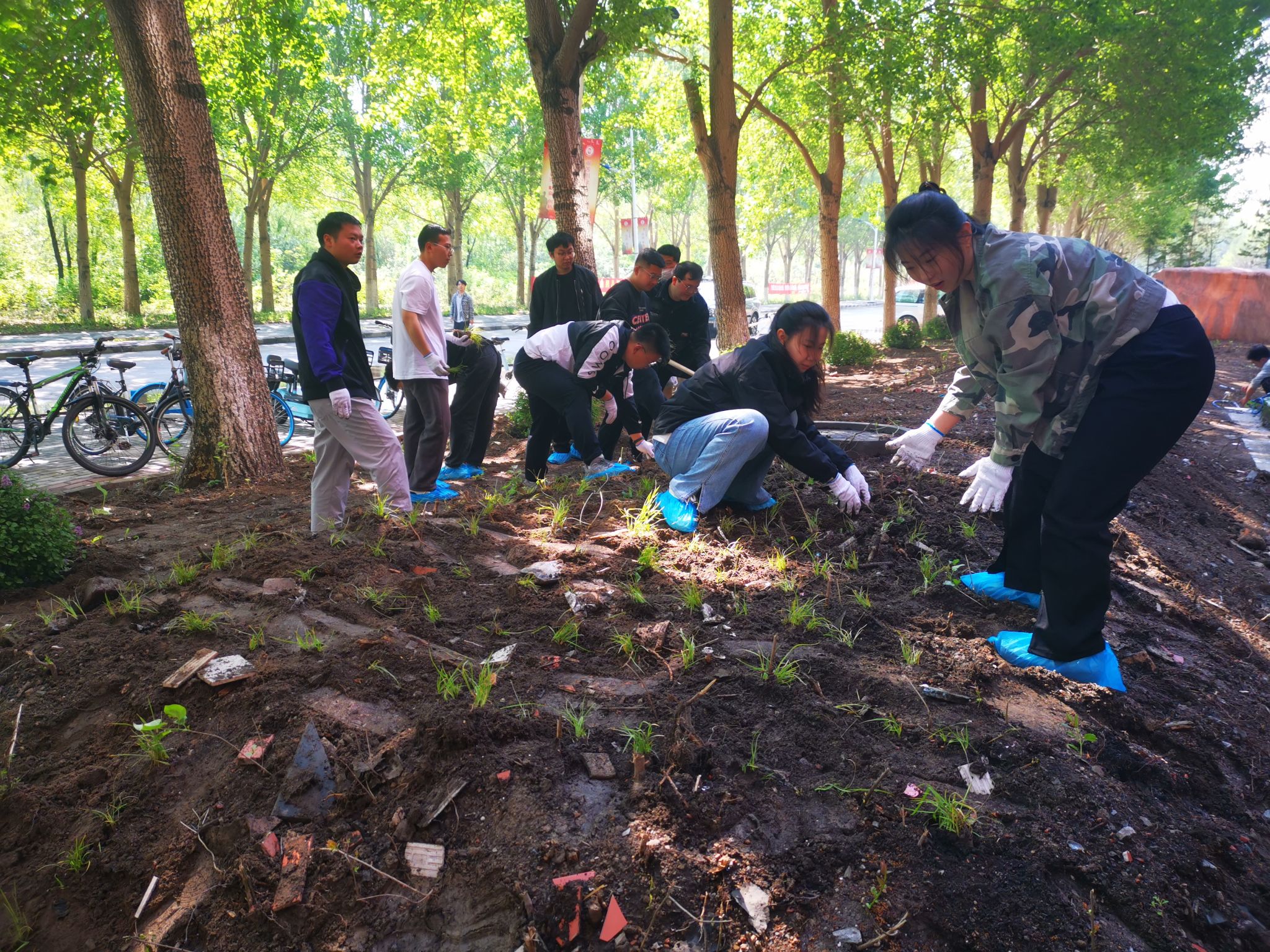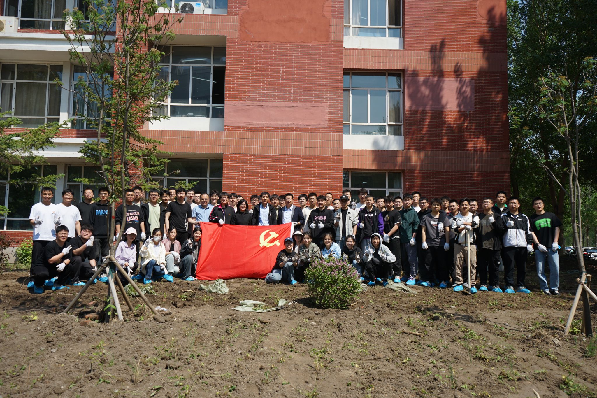 栽下一片新绿,播种一份希望。汗水书写历史,劳动铸就辉煌。劳动精神是一面旗帜,必将引领机械人向善向上。经过一整天的不懈努力,机电馆周围变得干净整洁,草皮环境焕然一新。这些新植不仅将成为校园的生态屏障,更寓意着学院对学子们的深切期望——如同幼苗成长为参天大树,愿每位学生都能在知识的土壤中茁壮成长。