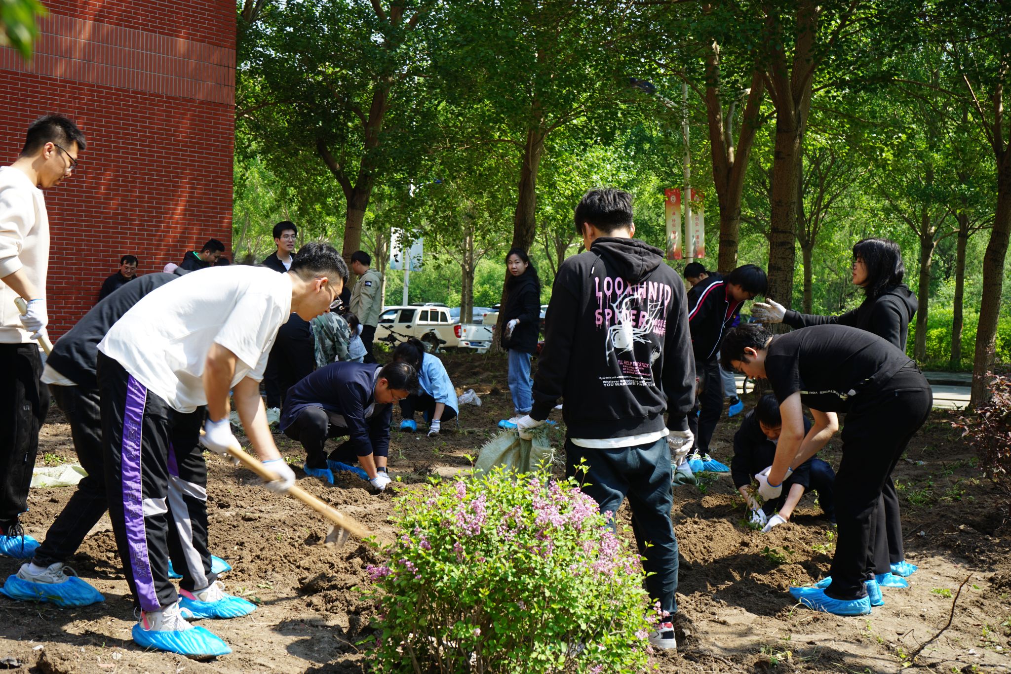 当日清晨,春风和煦,阳光明媚,学院师生齐聚机电馆前,手持铁锹,满怀热情地投入到植绿活动中。师生们充分发挥了团队协作的精神,明确分工,配合默契,有的挖坑、有的分苗、有的填土、有的清理石头、有的负责清运、有的浇水,每一个步骤都进行得井然有序。活动现场,欢声笑语与泥土的芬芳交织在一起,形成了一幅生动的劳动画卷。师生们劳动的身影也成为了校园里最美的一道风景,大家各司其职,相互配合,不怕苦、不怕累,以实际行动诠释劳动美德,展现团队协作精神,为打造整洁校园贡献力量。