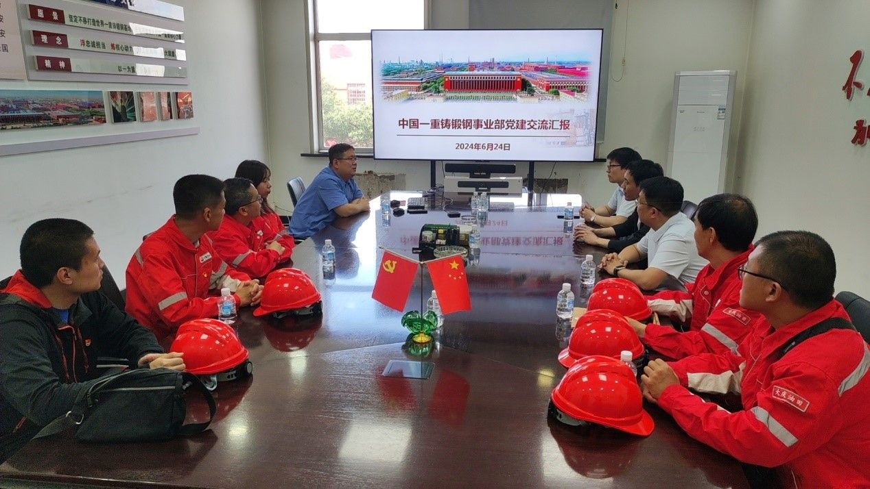 为深入贯彻学习党的二十大精神,充分发挥学院党支部和企业党支部各自的优势,丰富党支部活动形式,进一步推动党建融合业务创新发展,2024年6月24日,我院材料系与中国一重铸锻钢事业部开展党建共建交流活动。学院党委书记王勇,党委副书记闫超,副院长蒋鹏,材料科学与工程系党支部书记、系主任叶卫东,支部所有党员以及材料21级学生参加交流活动。