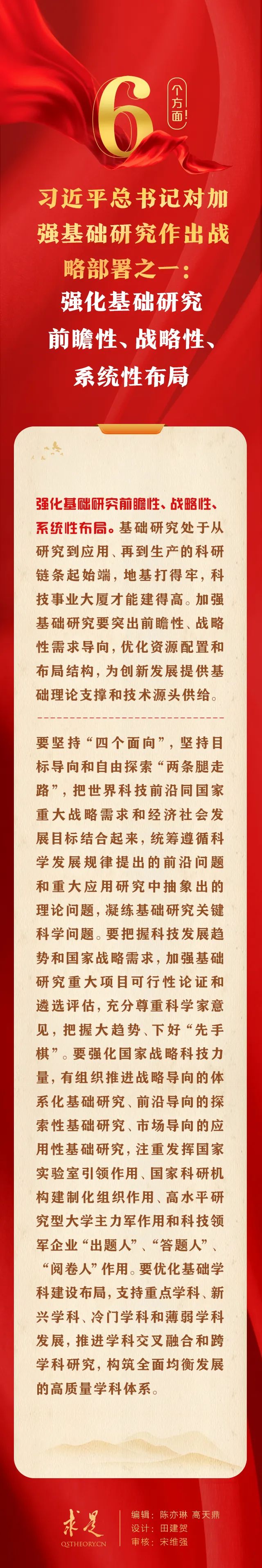 2023年8月1日出版的第15期《求是》杂志刊发习近平总书记重要文章《加强基础研究 实现高水平科技自立自强》。在这篇重要文章中,总书记深刻阐述加强基础研究的重大意义,从6个方面进一步对加强基础研究作出战略部署。