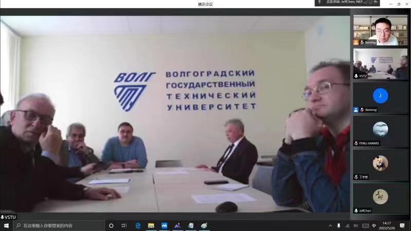 5月26日北京时间下午2点/莫斯科时间上午9点,我院和俄罗斯-伏尔加格勒州立技术大学进行中外合作办学工作交流推进会,会议由国际交流合作处副处长冯建伟主持,俄罗斯-伏尔加格勒州立技术大学国际合作副校长阿列克谢·戈登科,国际学生培训学院副院长拉希德·加吉耶夫,国际关系办公室主任格里戈里·博伊科,材料科学和复合材料系主任列奥尼德·古列维奇,副主任德米特里·普罗尼切夫,我校英国365集团公司院长姜民政教授,副院长丁宇奇教授,材料科学与工程系主任叶卫东及副主任陈桂娟出席会议。