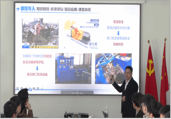在大庆市普罗石油科技有限公司的企业课堂中,企业导师紧密围绕企业石油能源装备研发与制造的技术需求,以液压阀门检测设备为企业真实案例,向学生们详细讲述阀门检测设备的用途和工作原理并演示其操作过程,强调操作过程中的阀门检测要点和安全操作措施,提出液压阀门检测设备的液压与气动系统存在的问题。主讲教师和学生围绕企业导师提出的问题进行研究、排查与讨论,发现液压与气动系统的问题主要是外啮合齿轮泵动力元件的问题。主讲教师与学生针对外啮合齿轮泵故障与解决措施开展研讨,解决企业技术需求问题。通过将理论课延伸到企业真实场景,使学生接触行业前沿,理解企业真实工程场景,不断加深对理论知识的理解,提高实际操作能力和解决问题的能力。企业技术团队能够帮助学生打通理论与实践的壁垒,为学生未来职业发展积累丰富经验。
